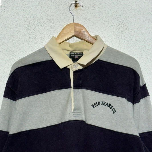 Vintage 00s Grey & Navy Ralph Lauren Rugby Shirt - Large