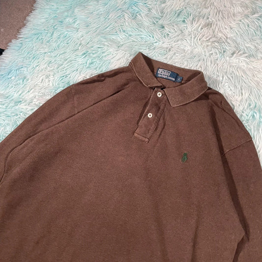 Vintage Brown Polo Ralph Lauren Polo Shirt Long Sleeve - Large