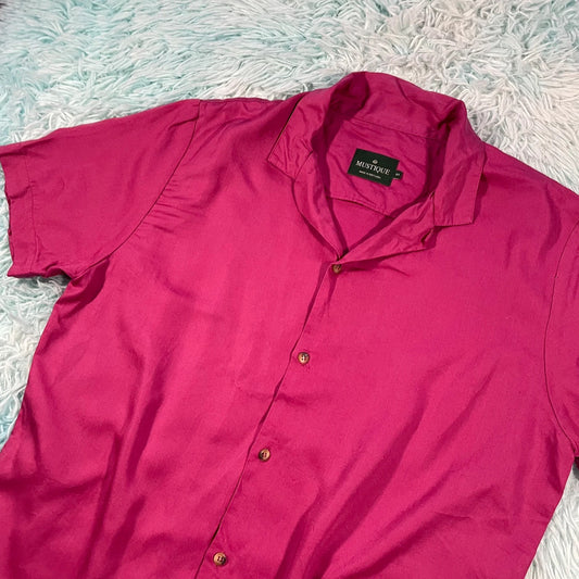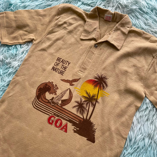 Vintage 1970s Brown Polo Shirt Goa Print - Medium