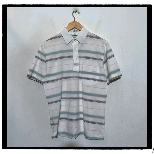 Vintage 80s White & Blue Striped Christian Dior Polo Shirt - Medium