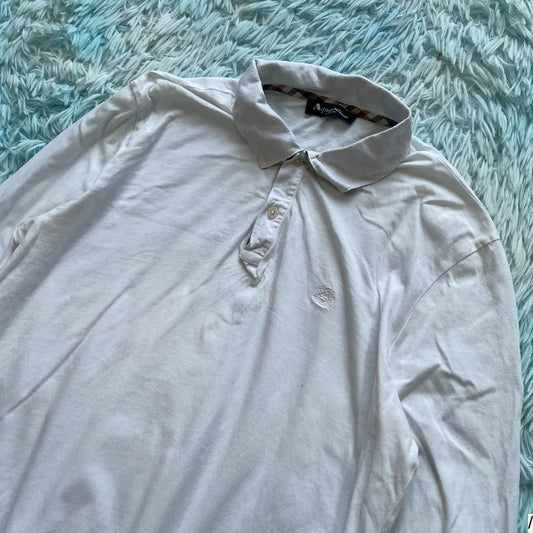 White Aquascutum Long Sleeve Polo Shirt - Medium