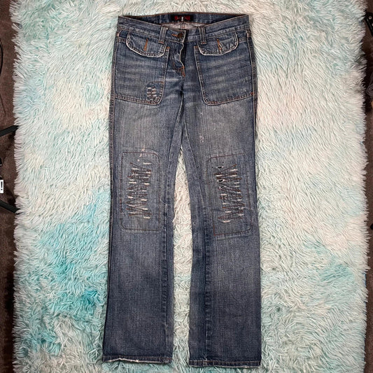 Vintage Y2K Distressed Jeans Striaght Slim Leg - W36 L32