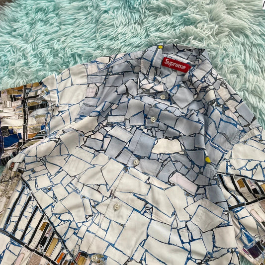 Orange & Blue Supreme T Shirt Henley Embroidered Spellout - Medium