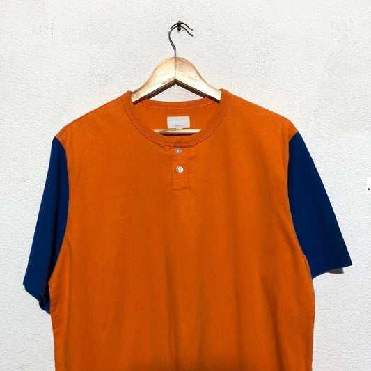 Orange & Blue Supreme T Shirt Henley Embroidered Spellout - Medium