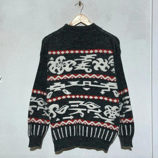 Vintage 90s Grey Patterned Knitted Jumper - Medium