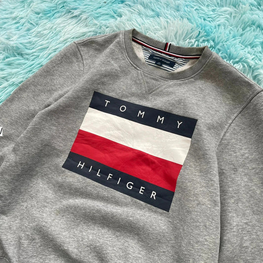 Grey Tommy Hilfiger Flag Print Sweatshirt - Small