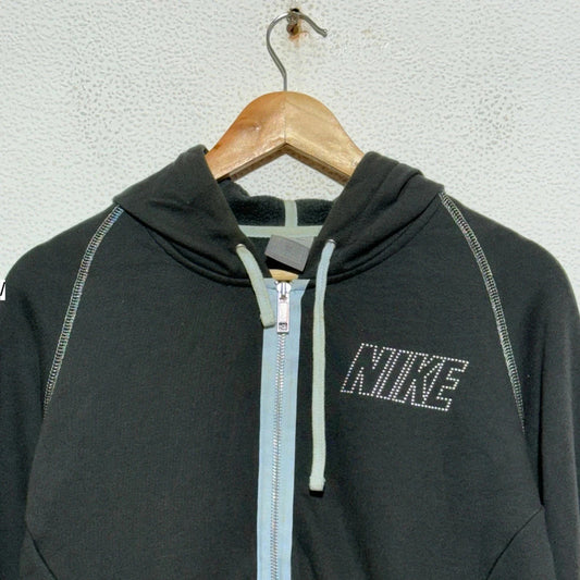 Vintage Dark Grey Y2K Nike Hoodie Full Zip - Medium
