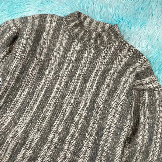 Vintage 90s Grey V Neck Wool Knitted Jumper - Medium