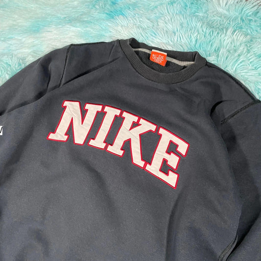 Vintage Dark Navy Nike Sweatshirt Spellout Logo - Small