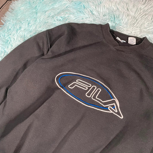 Vintage 90s Black Fila Sweatshirt Embroidered Spellout - Large