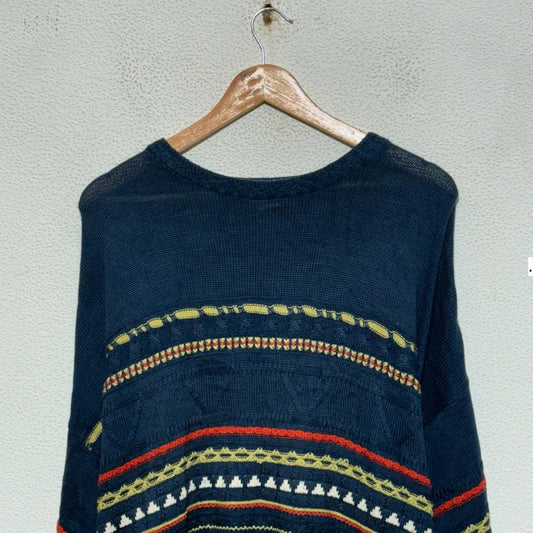 Vintage 80s Navy Aztec patterned Knitted Jumper - Large