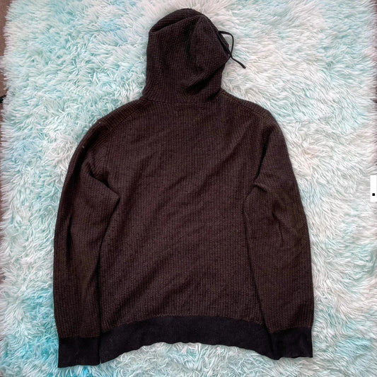 Dark Brown AllSaints Ribbed Knitted Hoodie Full Zip - Large