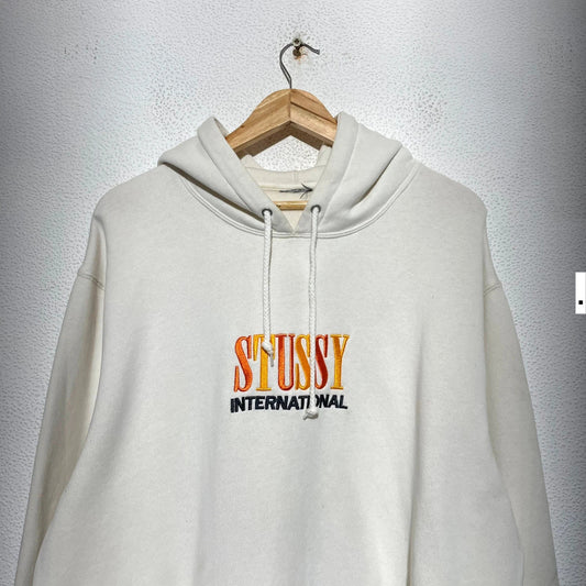 Cream White Stussy Hoodie Spellout - XL