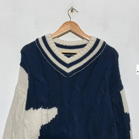 Navy & Cream Gant Heavyweight Knitted Jumper - Medium