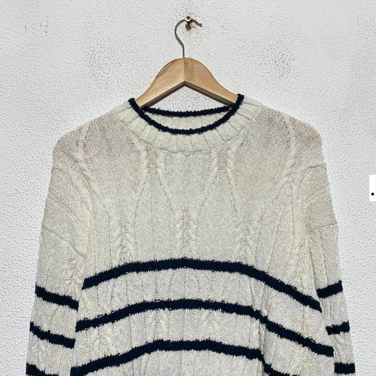 Cream & Navy Striped Gant Knitted Jumper Linen Blend - Large