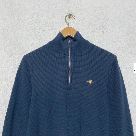 Navy Gant 1/4 Zip Sweatshirt Waffle Knit - Medium