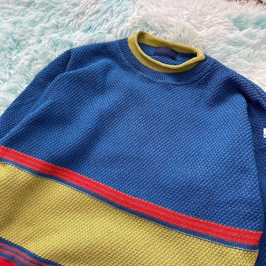 Vintage 90s Blue & Green Sweater Shop Knitted Jumper - Large