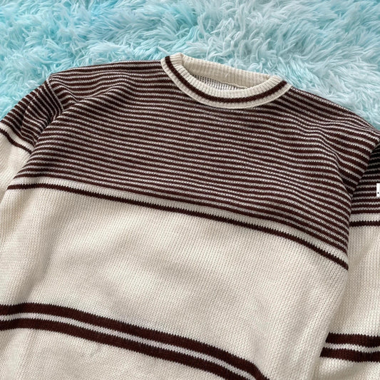 Vintage 90s Cream & Brown Chunky Knitted Jumper - Small