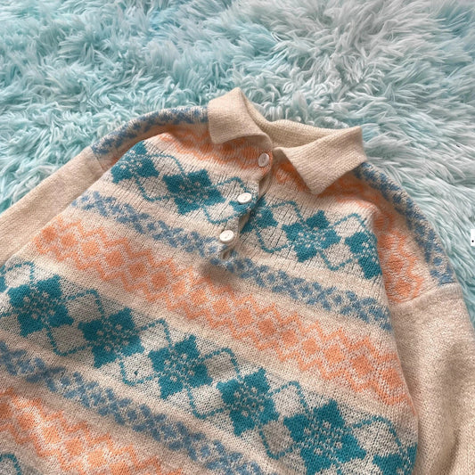 Vintage 90s Patterned Collared Grandma Jumper - Size 10