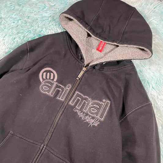 Black Animal Fleece Lined Hoodie Full Zip - Large