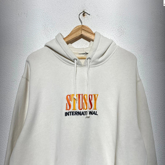 Cream White Stussy Hoodie Spellout - XL