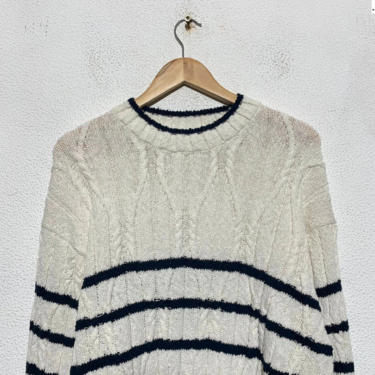 Cream & Navy Striped Gant Knitted Jumper Linen Blend - Large