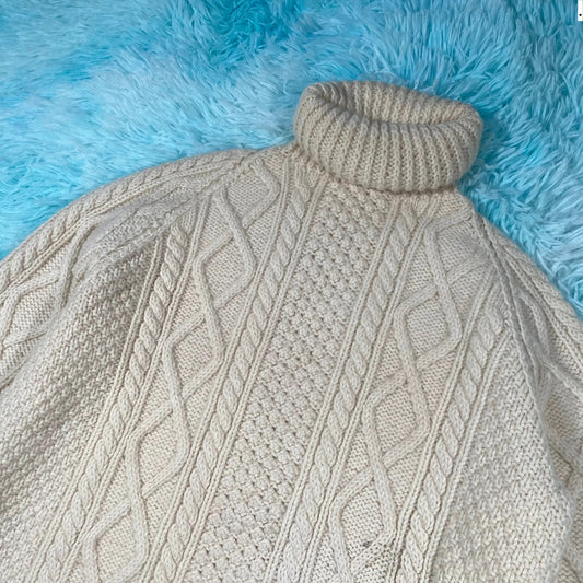 Vintage Cream Turtleneck Arran Knit Jumper - Small
