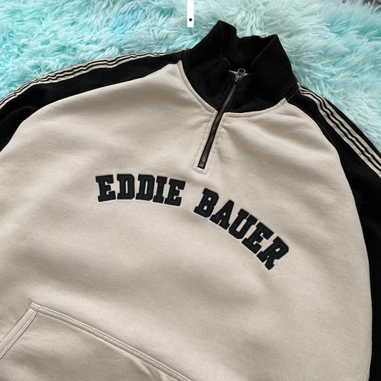 Vintage 90s Beige & Black Eddie Bauer 1/4 Zip Sweatshirt - XL