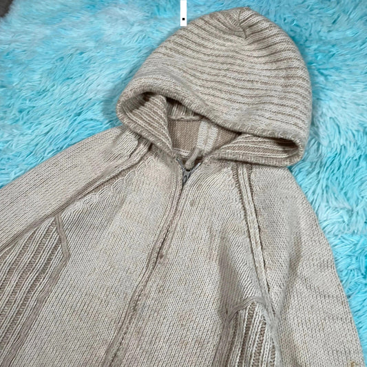 Vintage 00s Cream Knitted Hooded Jumper - Large
