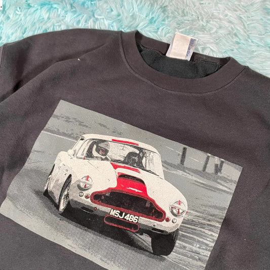 Vintage 00s Grey Aston Martin DB4 Graphic Sweatshirt - Large