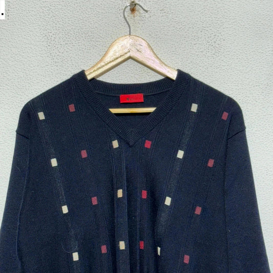 Vintage 90s Black Gabicci Knitted Jumper V Neck - Medium