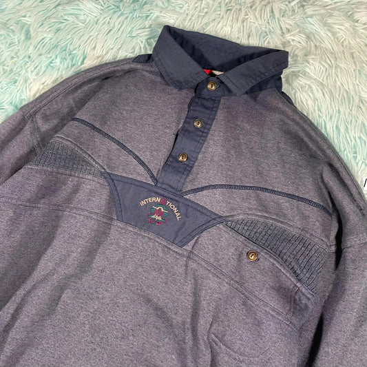 Vintage 90s Navy Collared Sweatshirt - Large