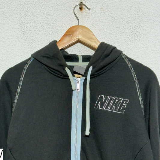 Vintage Dark Grey Y2K Nike Hoodie Full Zip - Medium