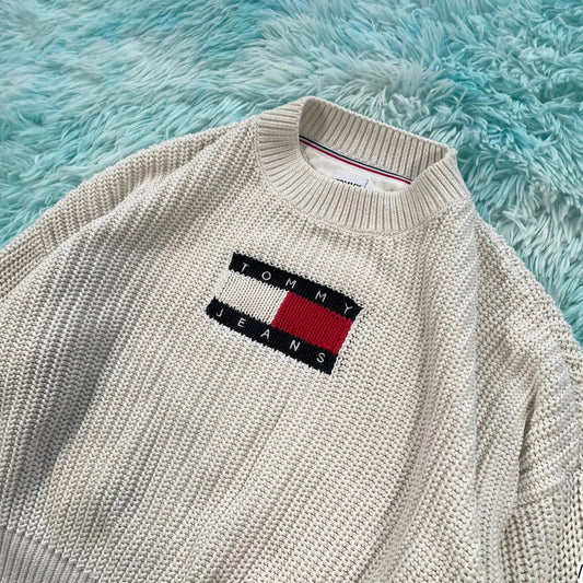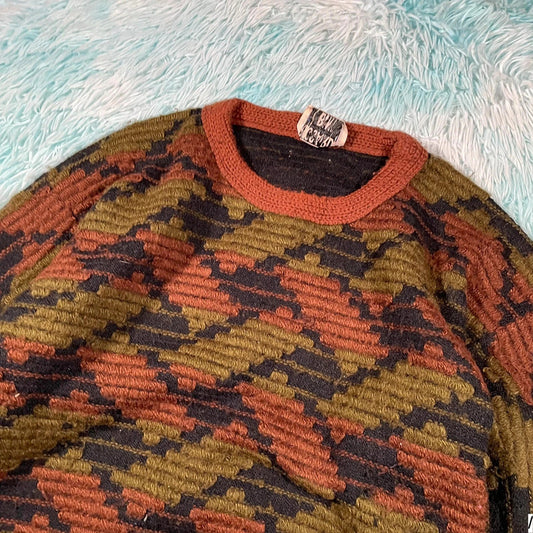 Vintage 80s Funky Patterned Knitted Jumper - Large