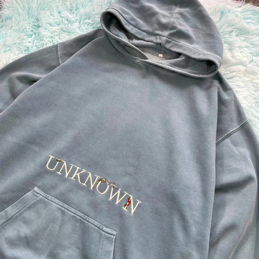 Blue Unknown Embroidered Hoodie Heavyweight - Large