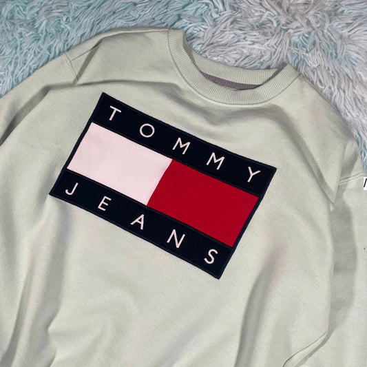 Grey Tommy Hilfiger Sweatshirt Spellout - Large