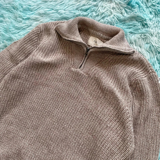 Beige Folk Knitted 1/4 Zip Jumper - XL
