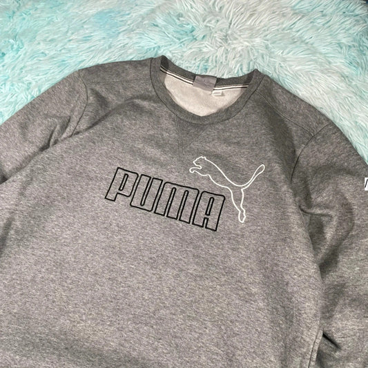 Grey Puma Sweatshirt Embroidered Spellout - Medium