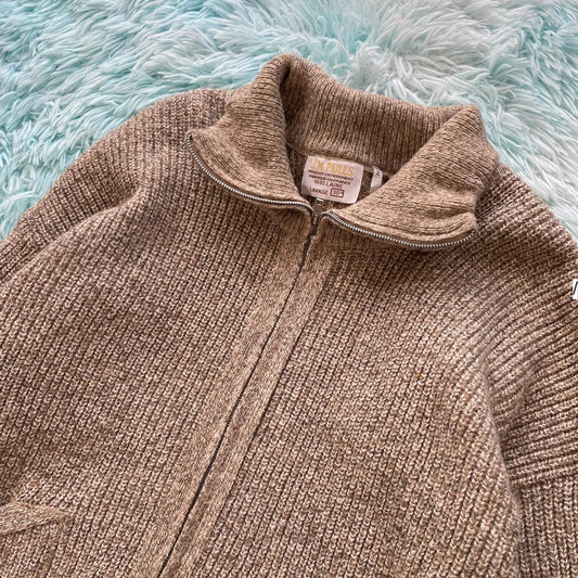 Vintage 90s Beige Heavyweight Wool Jumper Full Zip - Medium