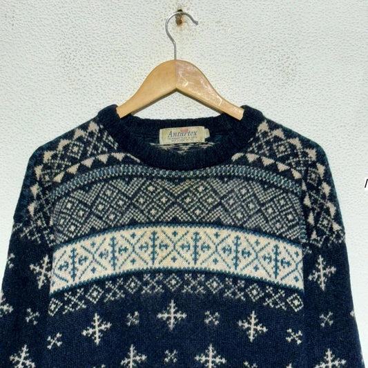 Vintage 90s Navy Nordic Patterned Knitted Jumper - Medium