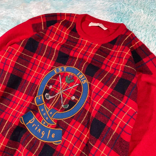 Vintage 90s Red Pringle Golf Tartan Jumper - M