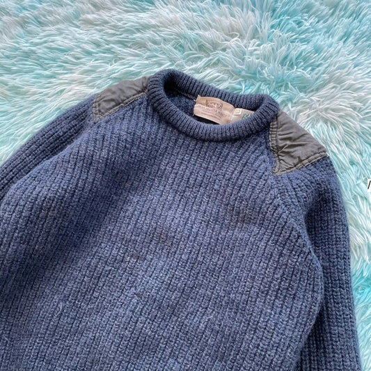 Vintage 90s Navy Arran Knit Jumper - Large