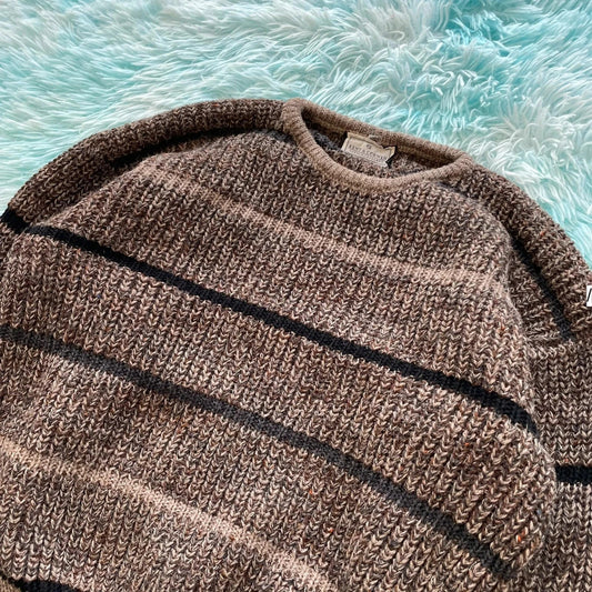 Vintage Brown Striped Crew 1/4 Zip Sweatshirt - Medium