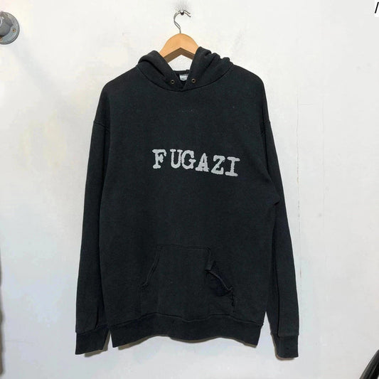 Vintage 90s Black Fugazi Band Hoodie Screen Stars - XL
