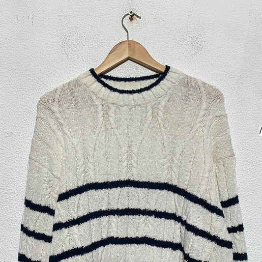 Cream & Navy Striped Gant Knitted Jumper Linen Blend - Large