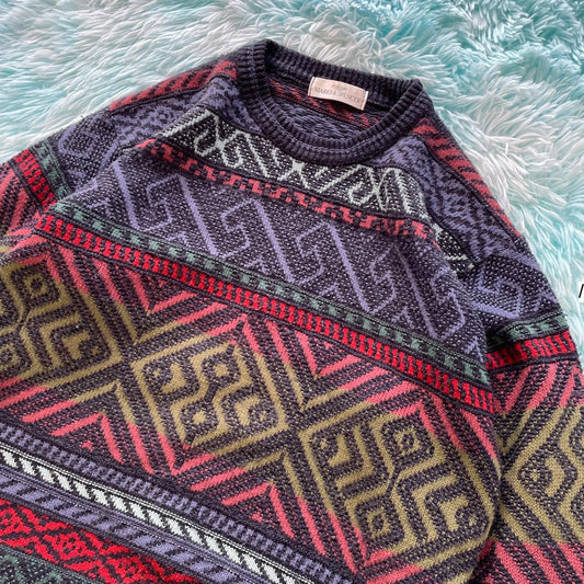Vintage 90s Funky St Michael Knitted Jumper - Large