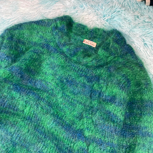 Vintage Green Blue Mohair Knitted Jumper - Medium