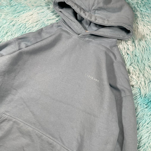 Light Blue I Love Ugly ILU Heavyweight Hoodie - XS