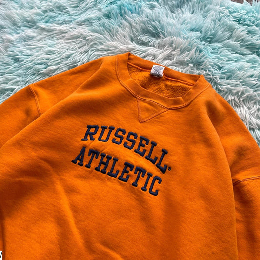 Vintage 90s Orange Russell Athletic Sweatshirt Spellout - XL