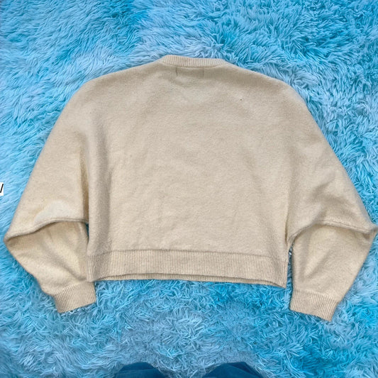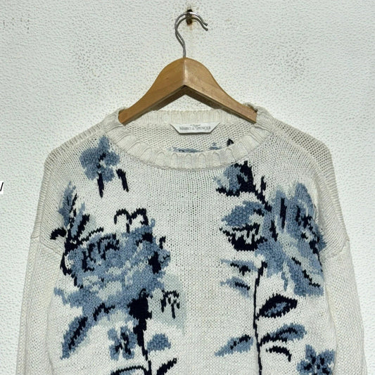 Vintage 80s White Floral Patterned St Michael Knitted Jumper - Size 12